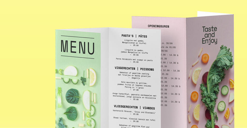 Dans un restaurant ou un établissement horeca, la carte du menu fait partie de l’expérience vécue par le client. Un look & feel adéquat est donc essentiel. En faisant de votre charte graphique le fil conducteur de votre menu, vous créerez une identité visuelle forte.