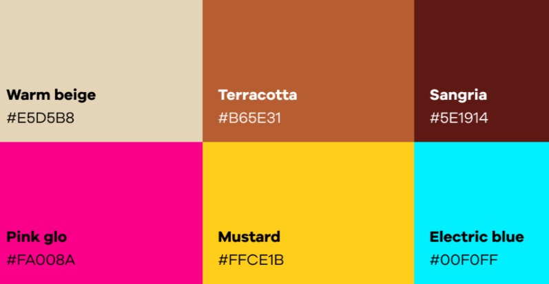 De jaren ‘80 zijn terug in print! Verwacht gedurfde, geometrische patronen, neonaccenten en energieke kleurenpaletten op posters, brochures en zelfs visitekaartjes. Maar let op: de retrotrend van 2025 voegt een moderne balans toe. Combineer levendige kleuren zoals rood en elektrisch blauw met aardetinten voor een eigentijdse twist. Tip: gebruik neon als accent om je ontwerpen te laten knallen zonder te overheersen.